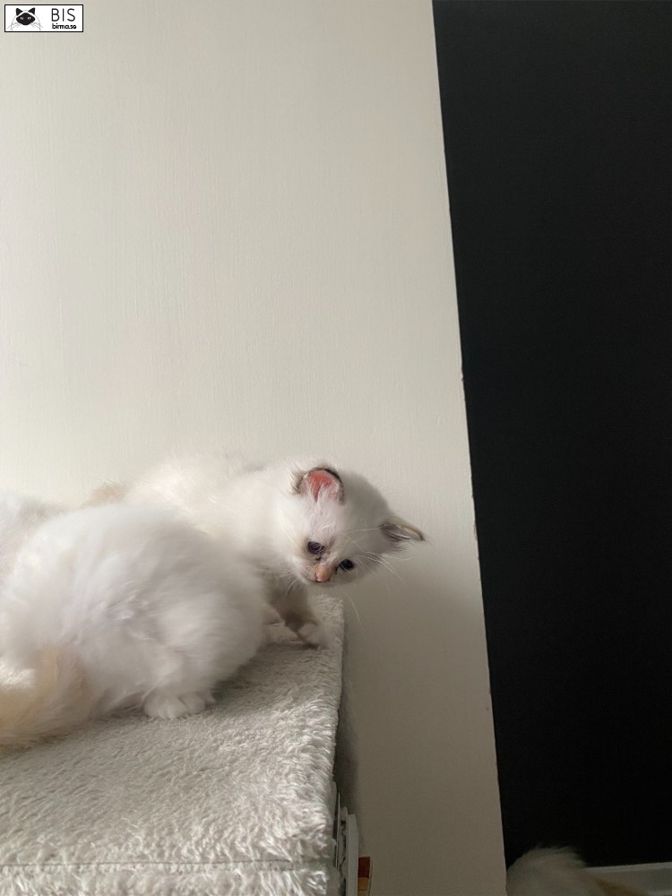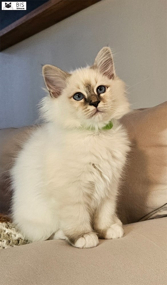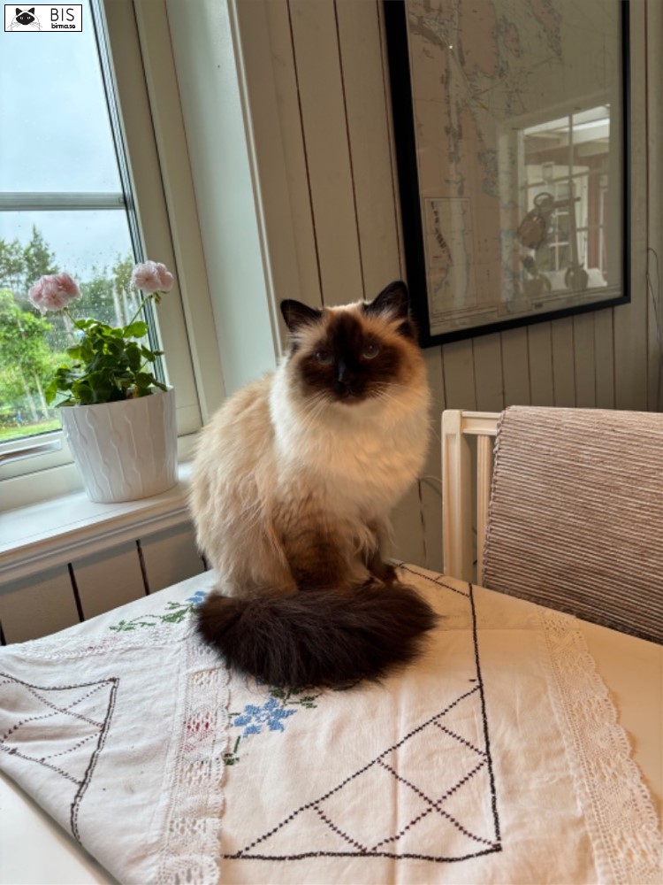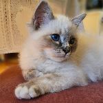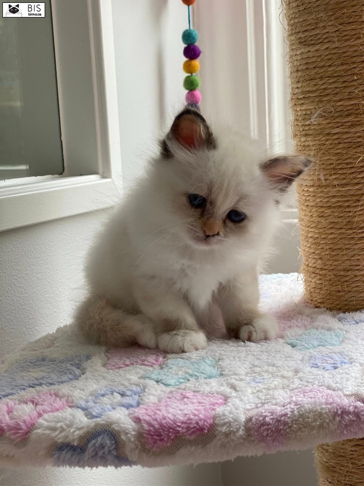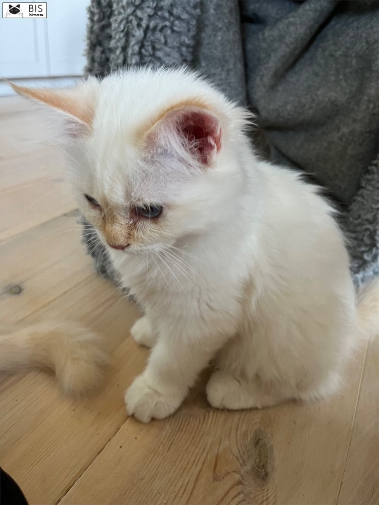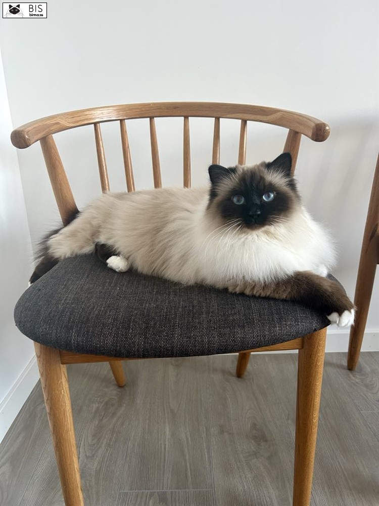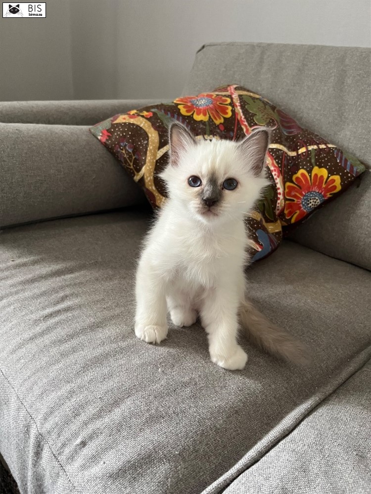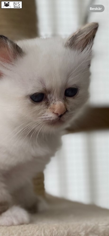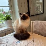 Det är med stor sorg vi har bestämt oss för att försöka hitta ett nytt hem åt vår Birma-kille (kastrerad), Nicke, hans registrerade namn är Mirrali's Knick. Han är född den 12:e maj 2020. Han är fantastisk men dessvärre mår han inte så bra i den nuvarande situationen. Vi hade en siamesdam när vi skaffade Nicke och trodde att de skulle ha utbyte av varandra, men icke. De har tolererat varandra, men inte mer. Det har ändå fungerat eftersom de ganska tidigt gjorde upp om hierarkin. Vi hade också en hund när vi skaffade Nicke och det var inga som helst problem. Förra året skaffade vi en goldenvalp och Nicke har inte varit sig själv sedan dess. Han har tidigare varit väldigt kelig, försiktig men kelig och go. Nu försöker han bara hålla sig undan och jag tycker så synd om honom. Han förtjänar att ha det bra men det har han inte nu. Det vi önskar är att han skulle få komma till ett hem där det finns en annan Birma som delar hans mjuka temperament, eller att han får vara ensamkatt. Han är väldigt lekfull när han slipper freda sig. Helst skulle det ju vara på landet, men det kanske inte är möjligt (han är innekatt nu). Det här är väldigt jobbigt för mig men jag har ett ansvar för att han ska ha det bra - och det kommer vara min man som ni får prata med. Jag fixar det helt enkelt inte.