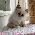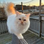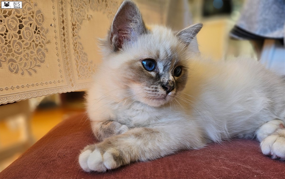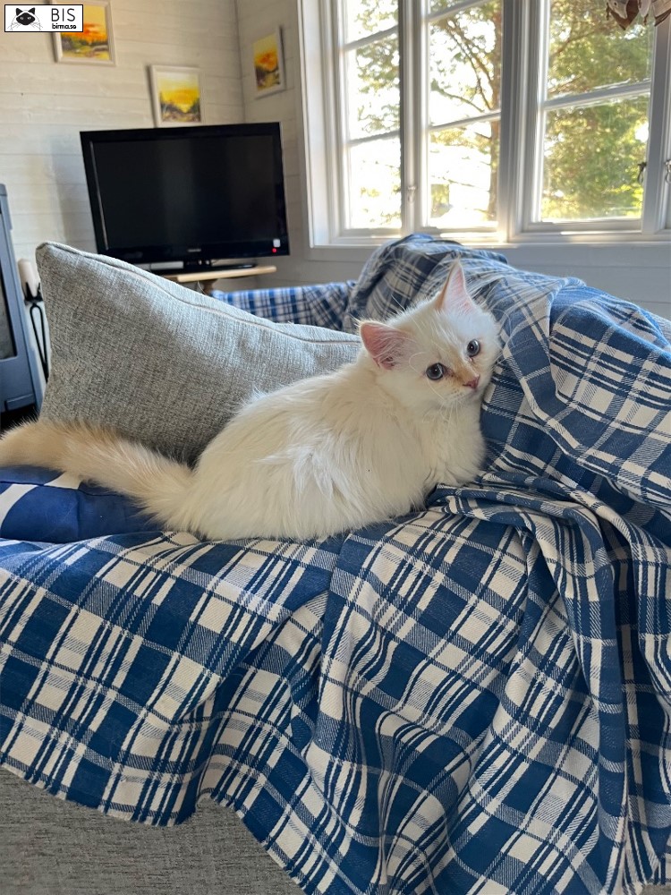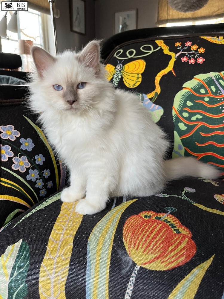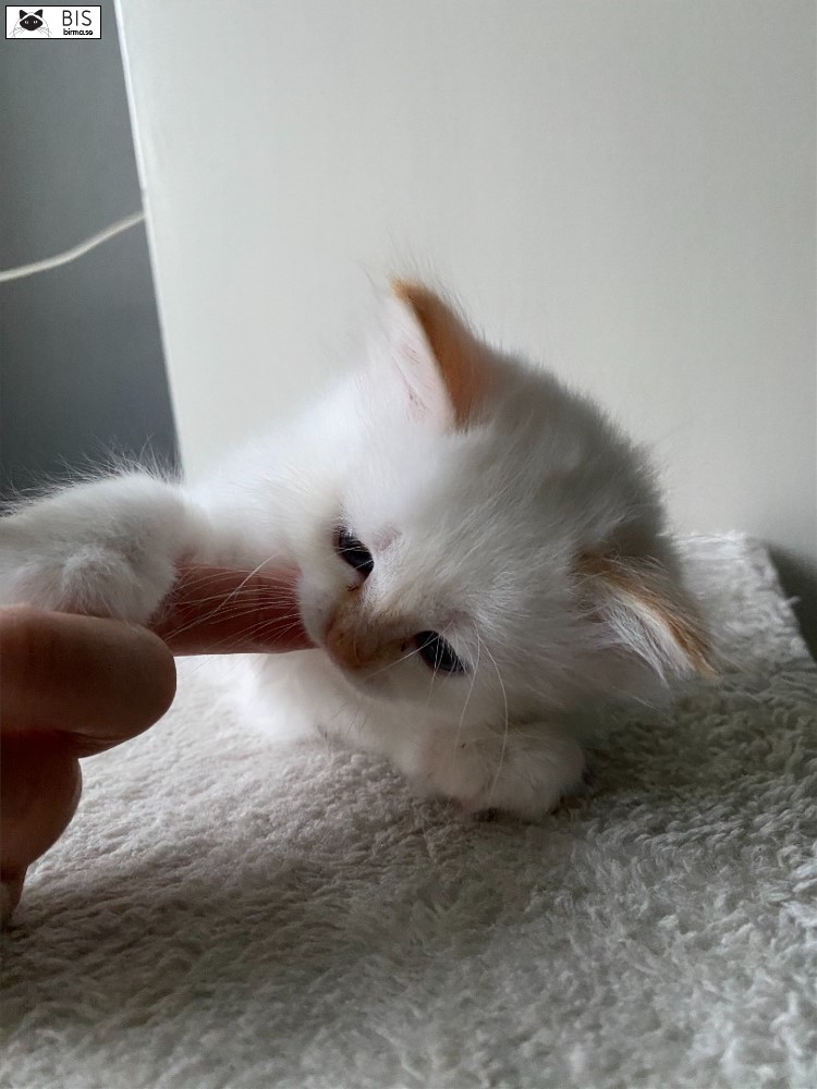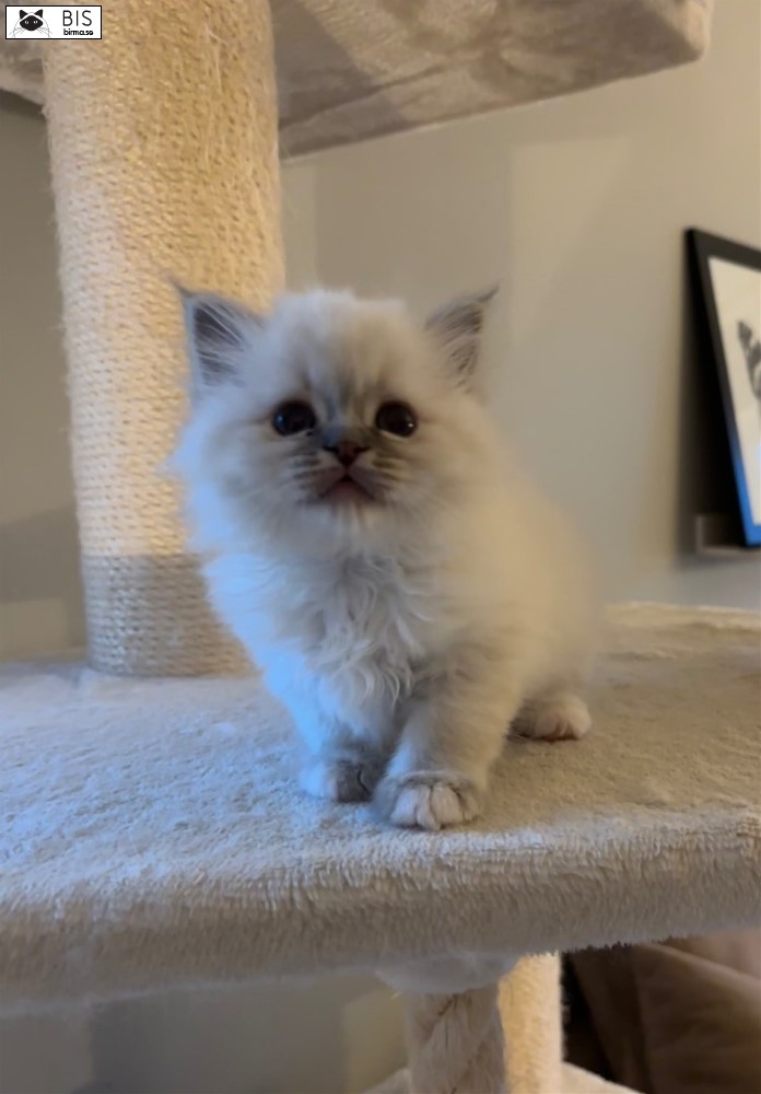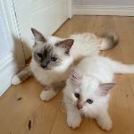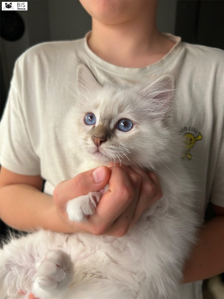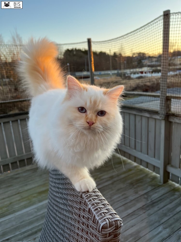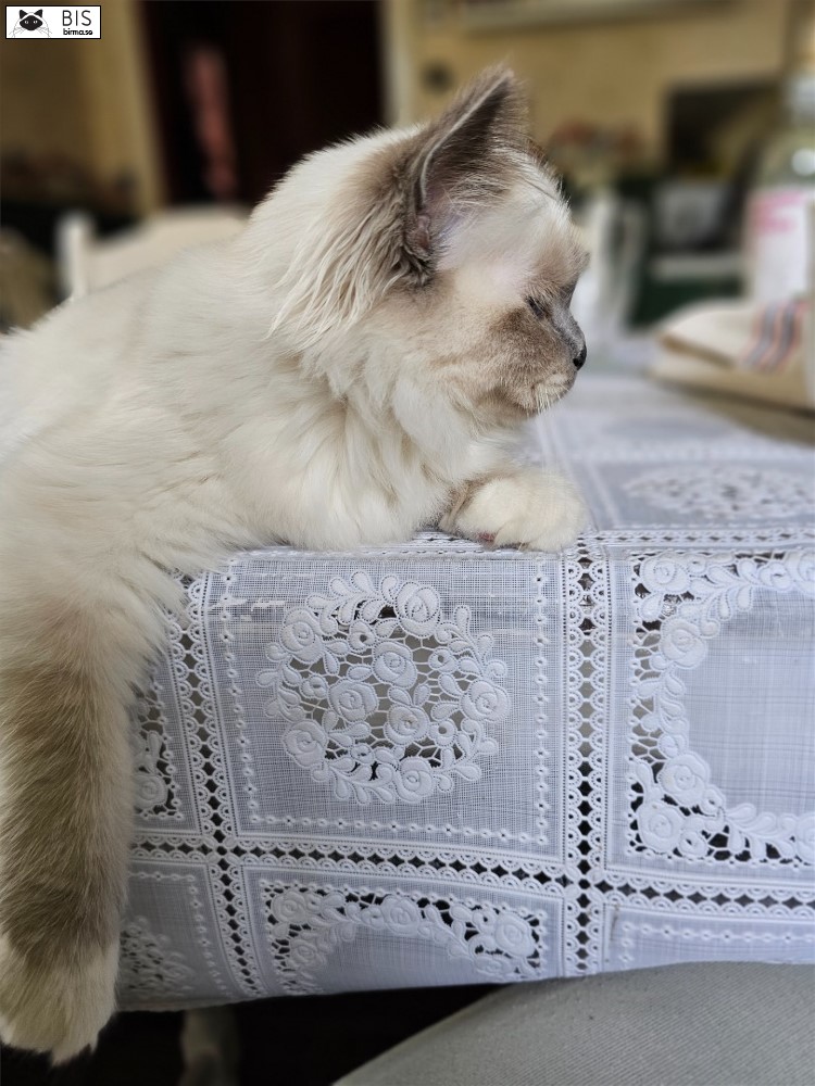 Det är med stor sorg vi har bestämt oss för att försöka hitta ett nytt hem åt vår Birma-kille (kastrerad), Nicke, hans registrerade namn är Mirrali's Knick. Han är född den 12:e maj 2020. Han är fantastisk men dessvärre mår han inte så bra i den nuvarande situationen. Vi hade en siamesdam när vi skaffade Nicke och trodde att de skulle ha utbyte av varandra, men icke. De har tolererat varandra, men inte mer. Det har ändå fungerat eftersom de ganska tidigt gjorde upp om hierarkin. Vi hade också en hund när vi skaffade Nicke och det var inga som helst problem. Förra året skaffade vi en goldenvalp och Nicke har inte varit sig själv sedan dess. Han har tidigare varit väldigt kelig, försiktig men kelig och go. Nu försöker han bara hålla sig undan och jag tycker så synd om honom. Han förtjänar att ha det bra men det har han inte nu. Det vi önskar är att han skulle få komma till ett hem där det finns en annan Birma som delar hans mjuka temperament, eller att han får vara ensamkatt. Han är väldigt lekfull när han slipper freda sig. Helst skulle det ju vara på landet, men det kanske inte är möjligt (han är innekatt nu). Det här är väldigt jobbigt för mig men jag har ett ansvar för att han ska ha det bra - och det kommer vara min man som ni får prata med. Jag fixar det helt enkelt inte.