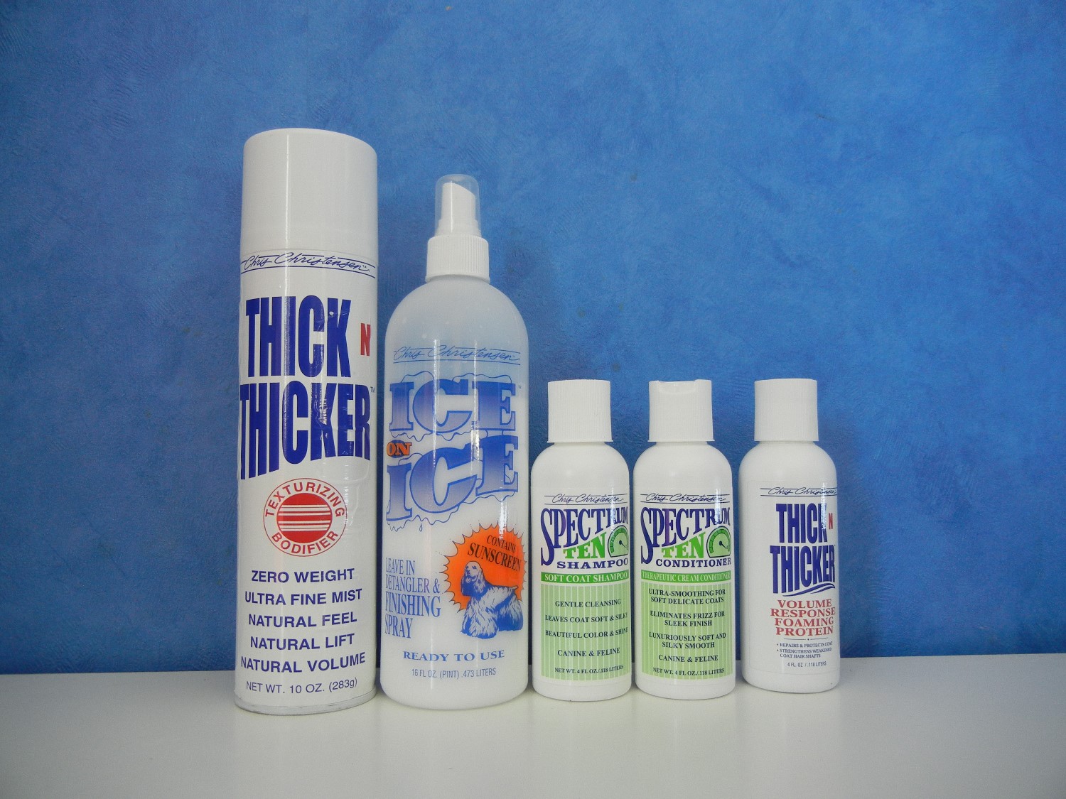 Sista bilden visar ett märke som många inte känner till och som heter Chris Christensen. Väldigt bra för många katter där den ena har perfekt silkig päls och den andra lite mer ullig päls. Men med lite mer spädning av vatten för den sistnämnda passar det perfekt.