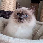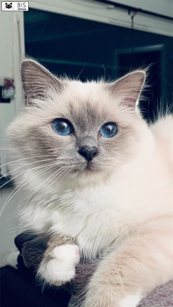 Den blåmaskade birman är en av ursprungsfärgerna för rasen. Maskfärgen ska var isigt blå, nästan som is. Masken på en vuxen katt ska vara tät och jämn.