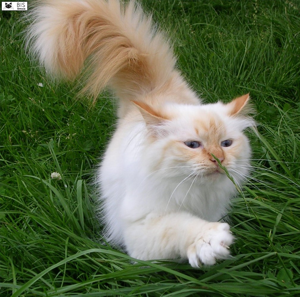 Den rödmaskad birma är tegelfärgad. Masken på en vuxen katt ska vara tät och jämn.