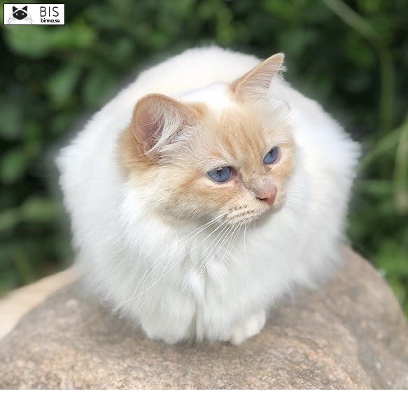 Den crememaskad birma är beige och går mot sandfärg. Masken på en vuxen katt ska vara tät och jämn.