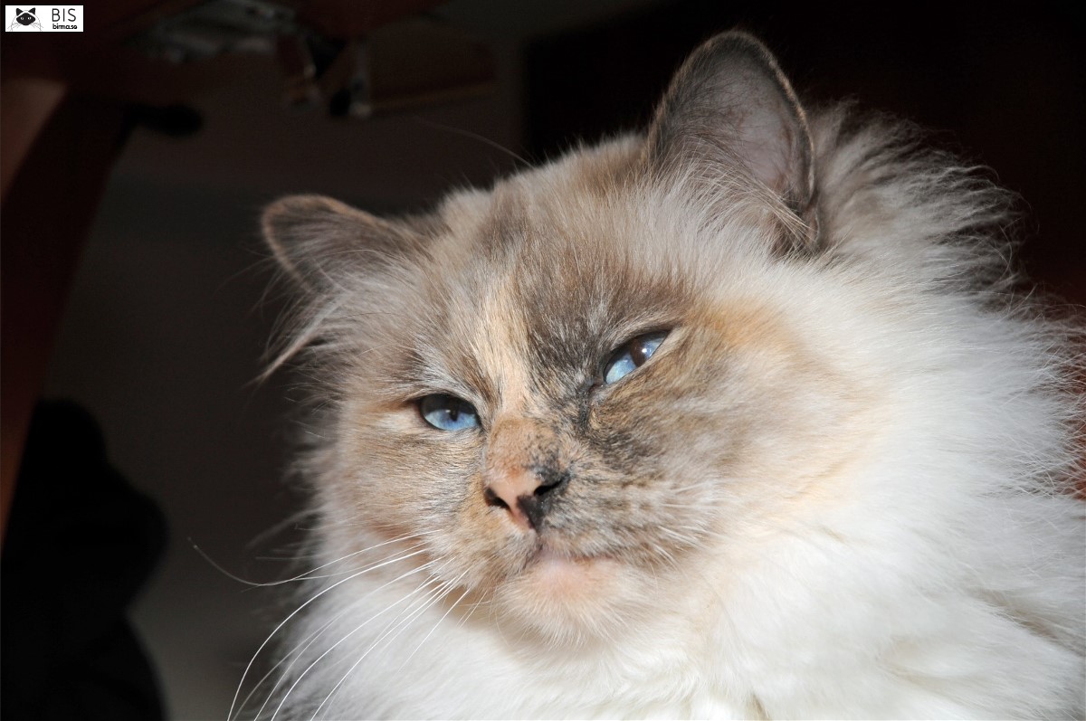 Den blåsköldpaddsmaskade kattens maskfärg ska vara en kombination av blå färg och creme.